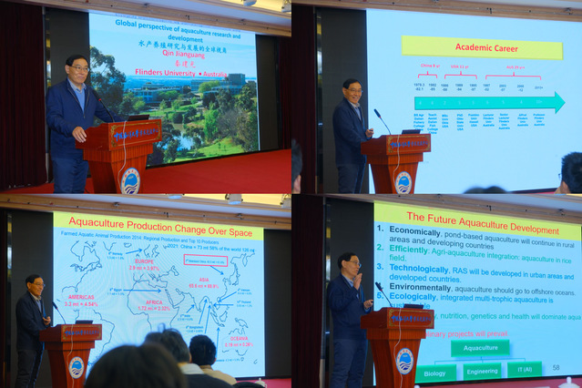 1月22日,jdb试玩-jdb捕鱼-jdb游戏 重点打造的学术品牌活动——“牧海人”论坛第二期在鱼山校区学术交流中心顺利举办。本期论坛由jdb试玩 与海水养殖教育部重点实验室联合主办,紧密围绕国家“蓝色粮仓”建设战略和水产养殖绿色高质量发展需求,致力于搭建高水平学术交流平台,弘扬“牧海人”精神,推动前沿研究与交叉融合,全面提升研究生创新能力和人才培养质量。本期论坛特邀费林德斯(Flinders)大学秦建光教授作专题学术报告。学院领导高勤峰、万敏和刘阳副院长出席活动,田相利教授主持交流讨论环节,学院教师及研究生120余人参加论坛。