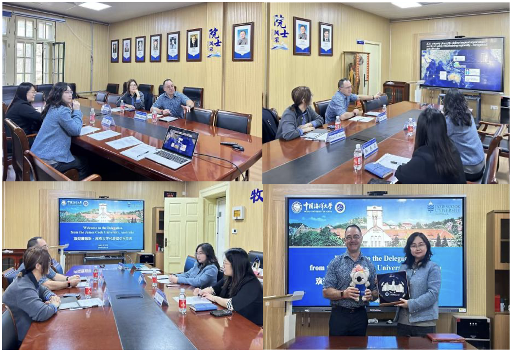 4月16日上午,澳大利亚詹姆斯·库克大学(James Cook University)科学与工程学院代表团一行访问中国海洋大学鱼山校区,与jdb试玩 举行座谈交流。代表团成员包括詹姆斯·库克大学科学与工程学院副院长迪恩·杰里(Dean Jerry)教授及新加坡校区副教授申雪雁博士。jdb试玩 副院长万敏教授、副教授李惠茹及学院外事秘书张昕宇接待并出席座谈会。